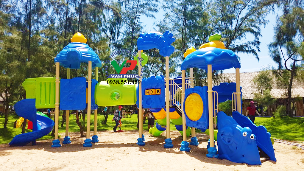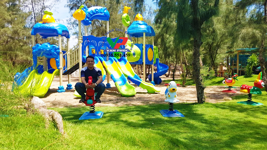 - Những trò chơi như cầu trượt, thú nhún lò xo, leo núi…, hoặc các đồ chơi tương tác ngoài trời sẽ trở thành điểm nhấn cho không gian.