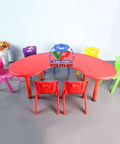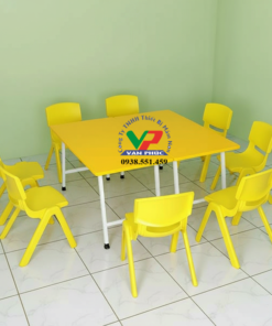 Với kích thước 110x55x50cm, bàn được thiết kế theo chiều cao tiêu chuẩn mầm non, đảm bảo tư thế ngồi thoải mái, khoa học, hỗ trợ sự phát triển toàn diện cho bé.