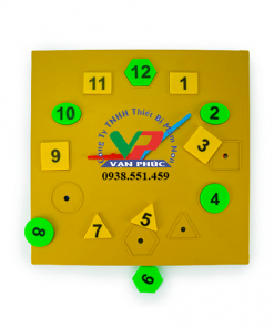 2. Đồng hồ 2 mặt: Gồm: 1 mặt đồng hồ, 1 mặt bàn tính gồm 5 hàng con tính gắn 2 đầu vào khung, mỗi hàng 10 loại khác nhau. Kích thước đồng hồ: 300×300 mm. - Công dụng: Giúp phát triển tư duy logic và tăng cường khả năng ghi nhớ của trẻ.