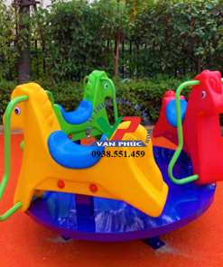 - Thiết kế độc đáo: Đu quay được thiết kế mô phỏng hình ảnh 3 chú ngựa, tạo nên sự thích thú và tò mò cho trẻ.