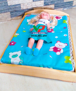 : Bằng gỗ được sơn phủ bóng, có đệm, mô tả theo giường thật có KT (500x320x100)mm.