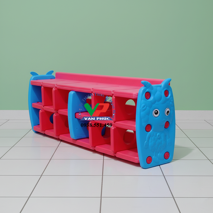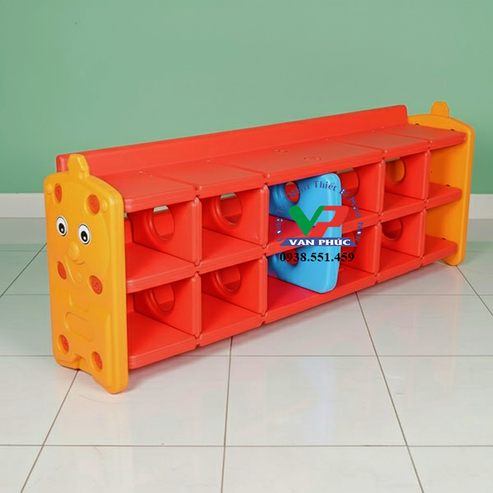 - Màu sắc tươi sáng, tạo điểm nhấn: Kệ V0774 thường có các tông màu tươi sáng, vui mắt như cam, xanh, vàng… tạo nên một điểm nhấn sinh động, phá cách cho không gian sống của bạn. Đặc biệt phù hợp với những gia đình có trẻ nhỏ hoặc yêu thích phong cách trẻ trung, hiện đại. Thiết kế hình thù ngộ nghĩnh ở hai đầu kệ (thường là hình con vật hoặc khuôn mặt cười) sẽ khiến trẻ em thích thú hơn trong việc tự giác cất giày dép.