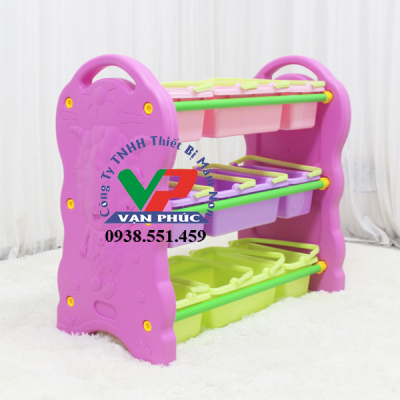 Kệ đựng đồ chơi mầm non hình Con Cừu V0701 kích thước 95x42x79cm có kết cầu 3 tầng, 9 giỏ đựng. Mỗi tầng gồm 3 chiếc giỏ đựng, một chiếc giỏ to ở chính giữa và hai giỏ nhỏ ở hai đầu được cố định bởi các khung đỡ bằng inox. Ngoài ra, mỗi giỏ đựng đồ đều có thêm quai xách tiện dụng đi kèm, giúp cho việc dọn dẹp và sắp xếp đồ chơi cũng như đồ dùng của bé được thuận tiện hơn.