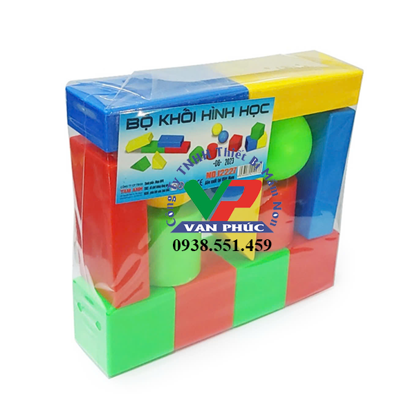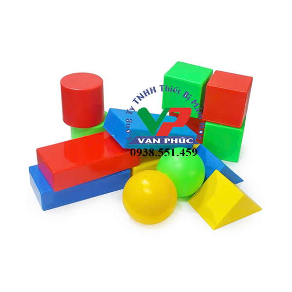- Chi tiết: Gồm 14 khối: 4 khối hình vuông (KT: 40×40 mm); 4 khối hình chữ nhật (KT: 20×80 mm); 2 khối hình tam giác vuông cân (KT: 40x40x55 mm); 2 khối hình trụ (đường kính 40 mm, cao 40 mm) 2 khối cầu Ø 4 mm