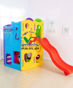 - Màu sắc cầu trượt tươi sáng bắt mắt, giúp bé nhận biết màu sắc ở lứa tuổi mầm non.