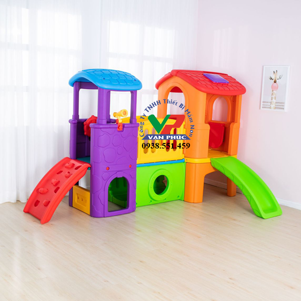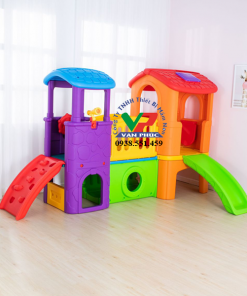 Nhà chơi cầu trượt 2 khối có thiết kế đặc biệt với 2 khối nhà leo cầu trượt nối liền với nhau bằng một lối đi ở giữa. Bộ nhà leo cầu trượt tích hợp nhiều trò chơi khác nhau bao gồm: leo núi, cầu trượt, hầm chui, đài quan sát, tạo cơ hội cho bé vui chơi, phát triển toàn diện cả về thể chất và trí tuệ. Mời bạn cùng tìm hiểu sâu hơn về mẫu nhà chơi cầu trượt 2 khối qua phần mô tả dưới đây.