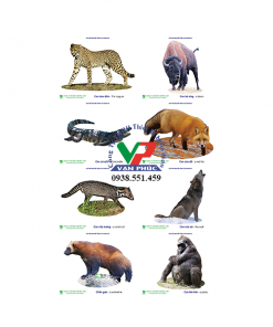 - Chi tiết: Ảnh 24 loại động vật hoang dã, in 1 mặt 4 màu, giấy couché định lượng 200g/m2. KT: 190 x 270(mm). Sản phẩm phủ PVE.