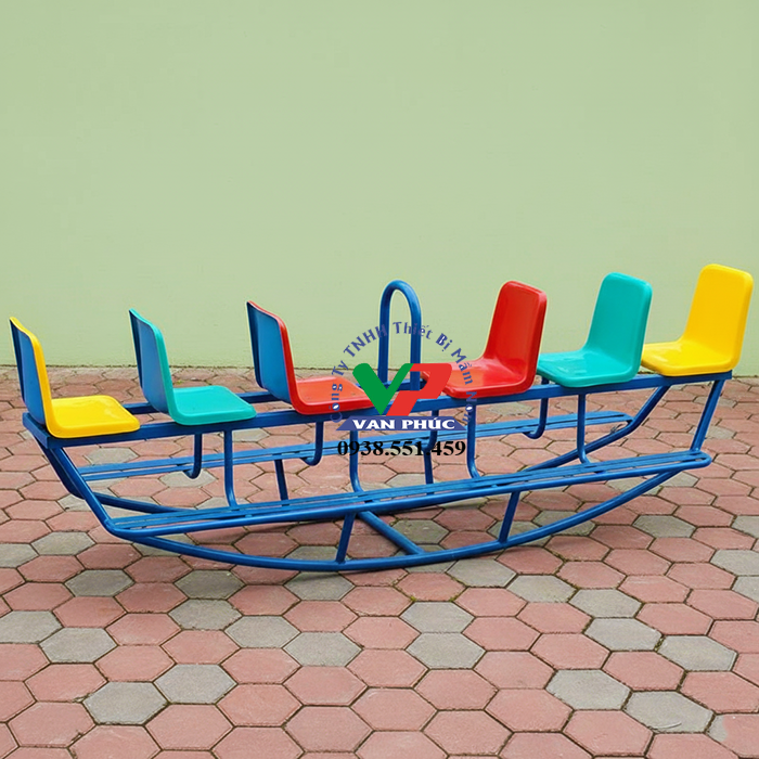 Bập bênh composite long thuyền 6 ghế V1329 là một sản phẩm chất lượng và độc đáo, được thiết kế đặc biệt, giúp trẻ vận động vui chơi phát triển thể dục thể chất ở giáo dục mầm non. Dưới đây là một mô tả chi tiết về sản phẩm:
