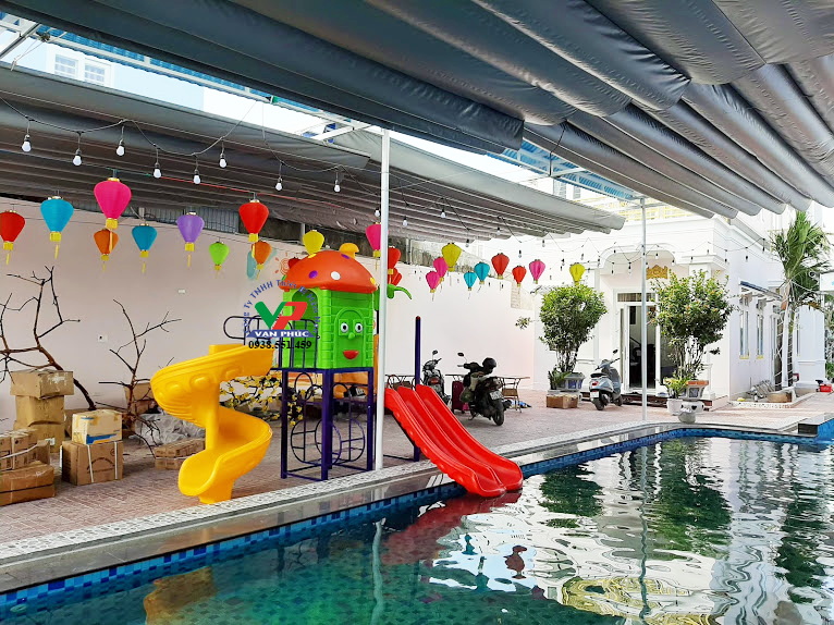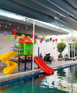 - Thẩm mỹ đẹp mắt: Sản phẩm có thiết kế hiện đại, màu sắc tươi sáng, phù hợp với không gian ngoài trời, mang lại vẻ đẹp bắt mắt cho khu vui chơi.
