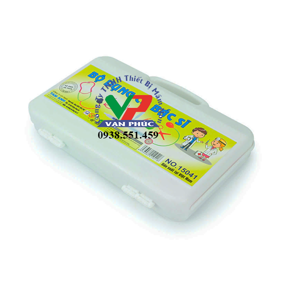 Bộ dụng cụ bác sĩ cho bé MN562094 . Thường sử dụng tại các trường mầm non, hộ gia đình và các khu vui chơi. Sản phẩm làm bằng nhựa nguyên sinh an toàn, không độc hại đựơc chứng nhận đảm bảo an toàn chất lượng tại tổng cục tiêu chuẩn đo lường chất lượng Việt Nam. Bộ đồ chơi dụng cụ bác sĩ còn được thiết kế với nhiều thiết bị y tế như tai nghe, đo huyết áp, kéo, kính, lọ thuốc, thìa…..màu sắc tươi sáng, giúp trẻ mô phỏng vai trò của một bác sĩ hoặc y tá trong trò chơi.