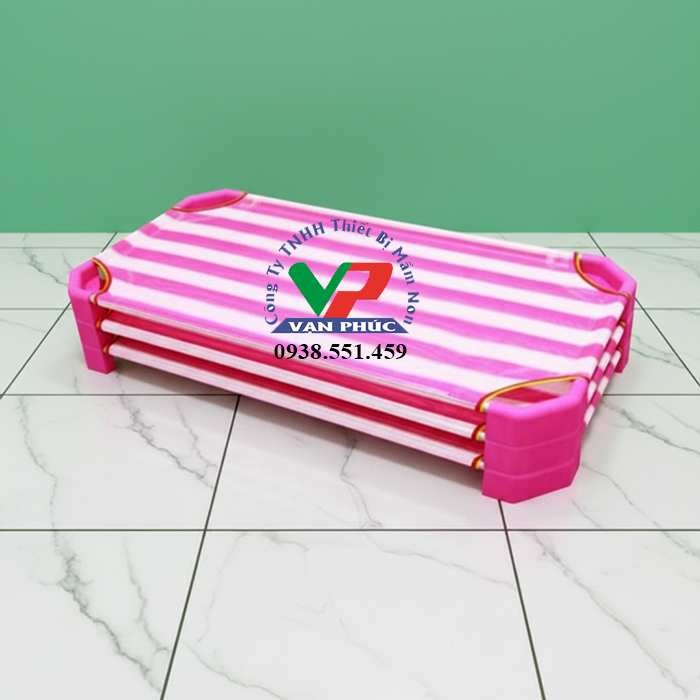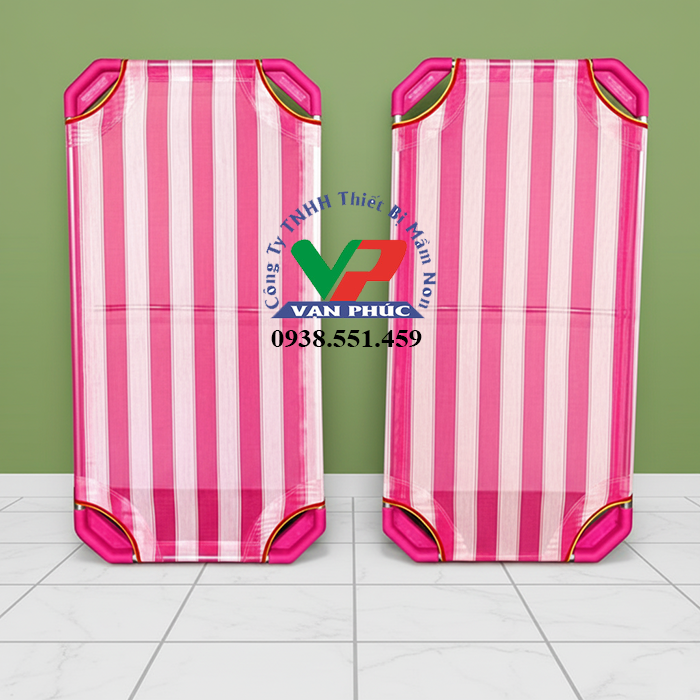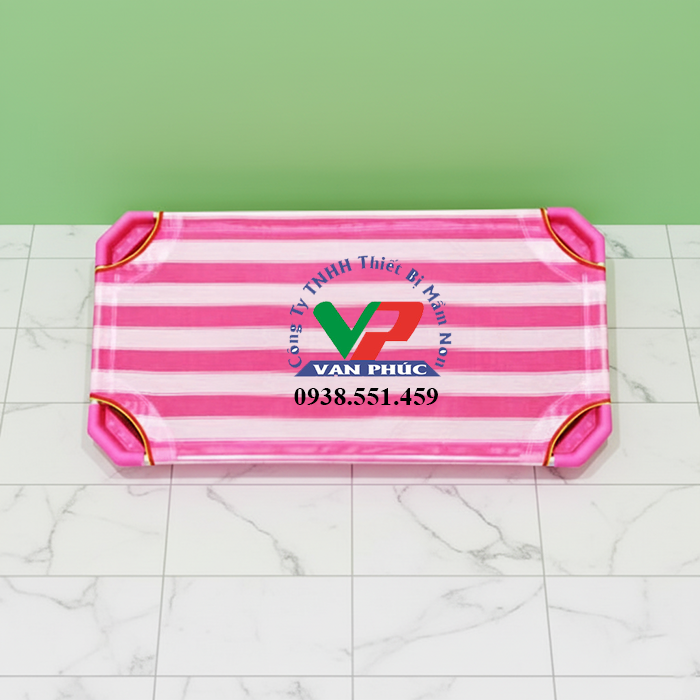 Giường ngủ mầm non sọc trắng, hồng V0609 được thiết kế theo tone màu hiện đại, phù hợp với lứa tuổi sơ sinh và trường mầm non. Bề mặt giường bằng vải lưới PVC nhập khẩu, độ đàn hồi cao khi sử dụng, không giãn, đặc biệt thoáng khí, dễ dàng vệ sinh.