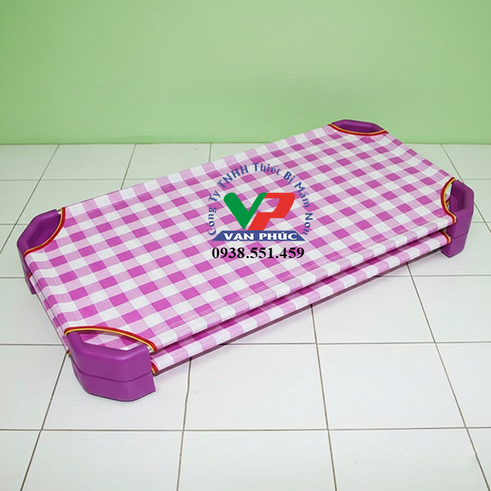 Giường ngủ mầm non ca rô trắng, tím V0610