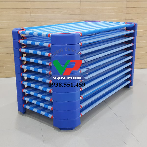 Để trẻ có thể ngủ trưa tại trường mầm non thì Giường ngủ mầm non sọc xanh dương V0601 dường như không thể thiếu cho bất kỳ trường mầm non nào từ thành thị cho đến nông thôn.