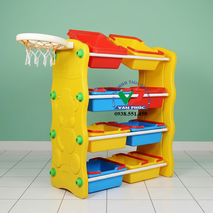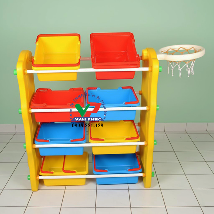 - Kệ có nhiều tầng mỗi tầng có các khay chia ngăn nhỏ giúp bé có thể đựng đồ chơi riêng biệt và không mất nhiều thời gian để tìm, tầng trên cùng rất tiện cho bé để sách, truyện, búp bê, siêu nhân,…..