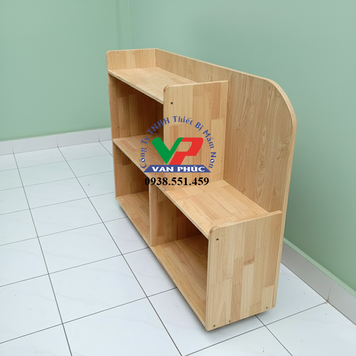 Thiết kế nhiều ngăn đa dạng giúp kệ không chỉ là kệ đựng đồ chơi mầm non mà còn là kệ sách mầm non, giúp bé tiếp cận đồ dùng một cách dễ dàng và an toàn.