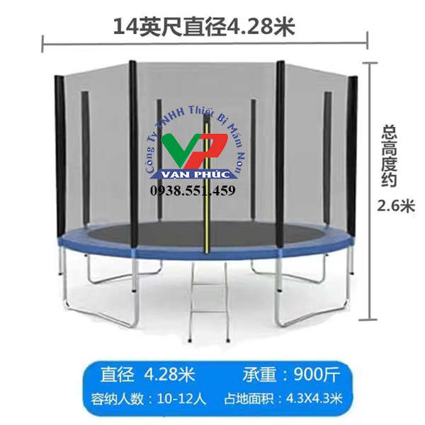 - Kích thước lớn: Với đường kính 4.28m, sàn nhún cung cấp không gian rộng rãi, cho phép nhiều trẻ cùng chơi, tạo ra những giây phút vui vẻ và tương tác xã hội.